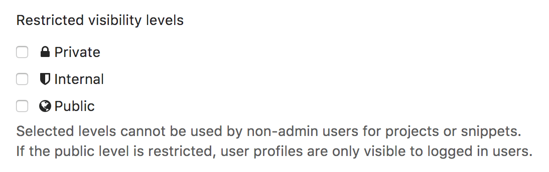 restrict the use of visibility levels for users when they create a project or a