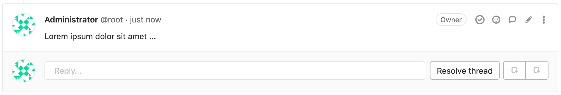 Every standard comment or thread in merge requests, commits, commit diffs, and snippets is initially displayed as unresolved. They can then be individually resolved by anyone with at least Developer access to the project or by the author of the change being reviewed. If the thread has been resolved and a non-member unresolves their own response, this will also unresolve the discussion thread. If the non-member then resolves this same response, this will resolve the discussion thread.