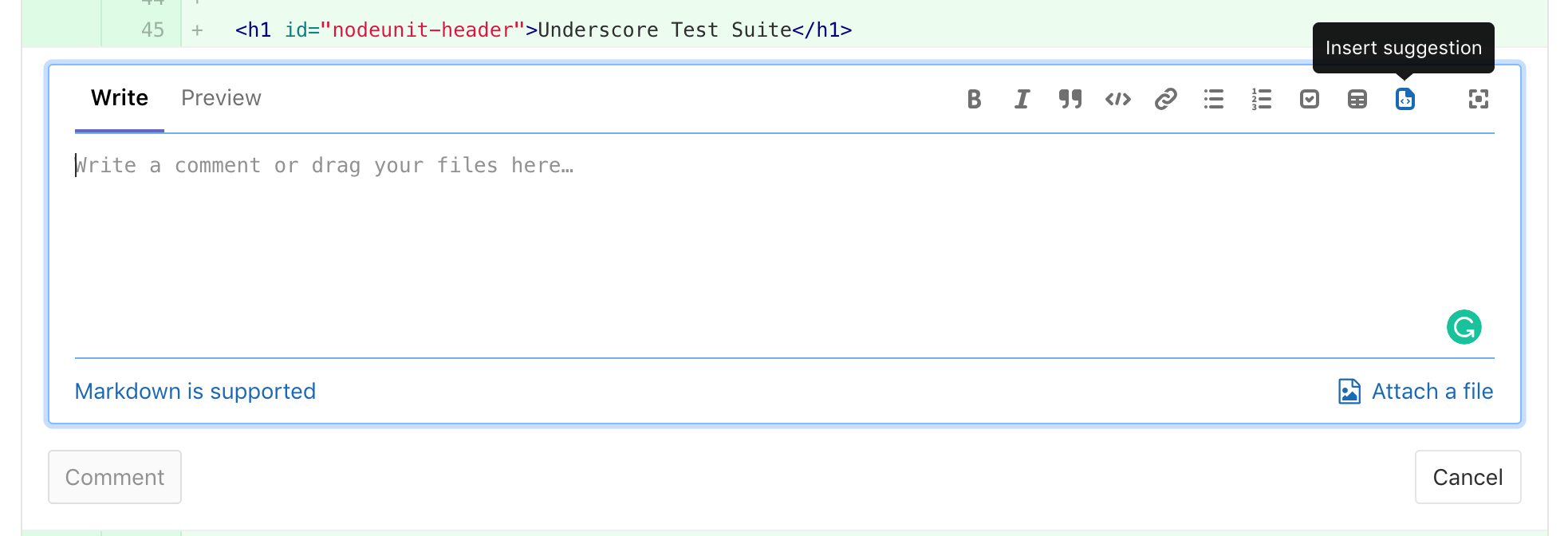 - Finish review: Submits all comments that are part of the review, making them visible to other users.
