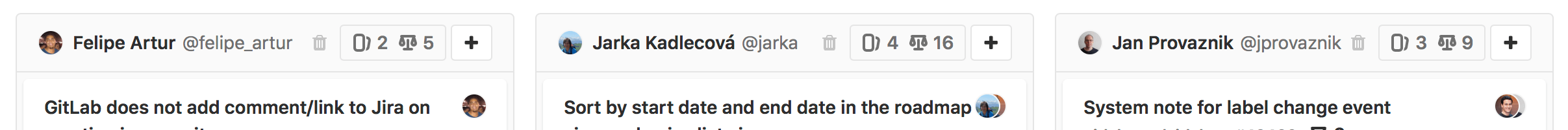 The top of each list indicates the sum of issue weights for the issues that belong to that list. This is useful when using boards for capacity allocation, especially in combination with assignee lists.