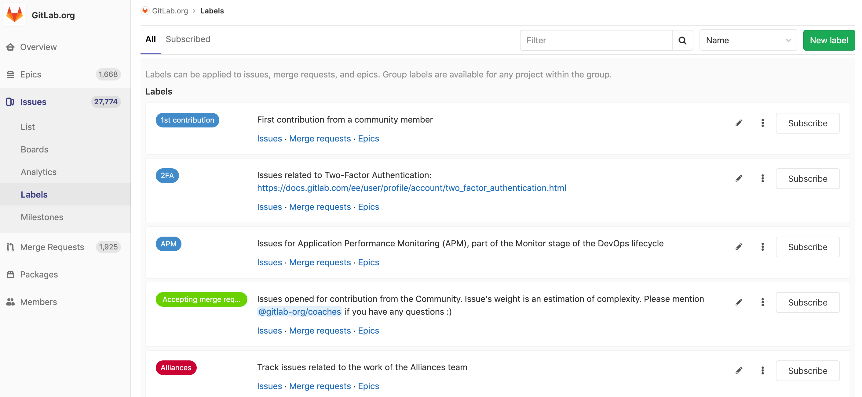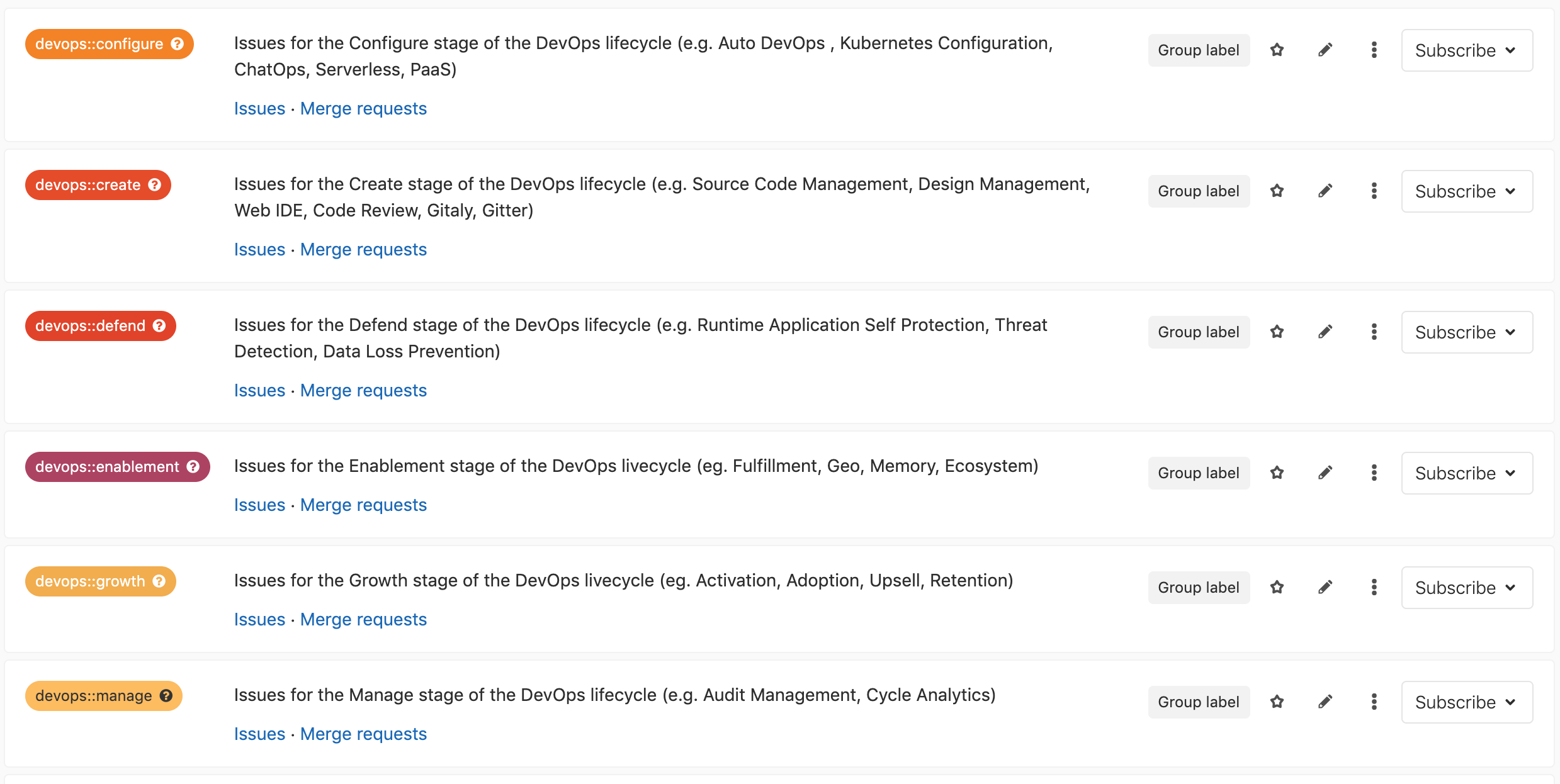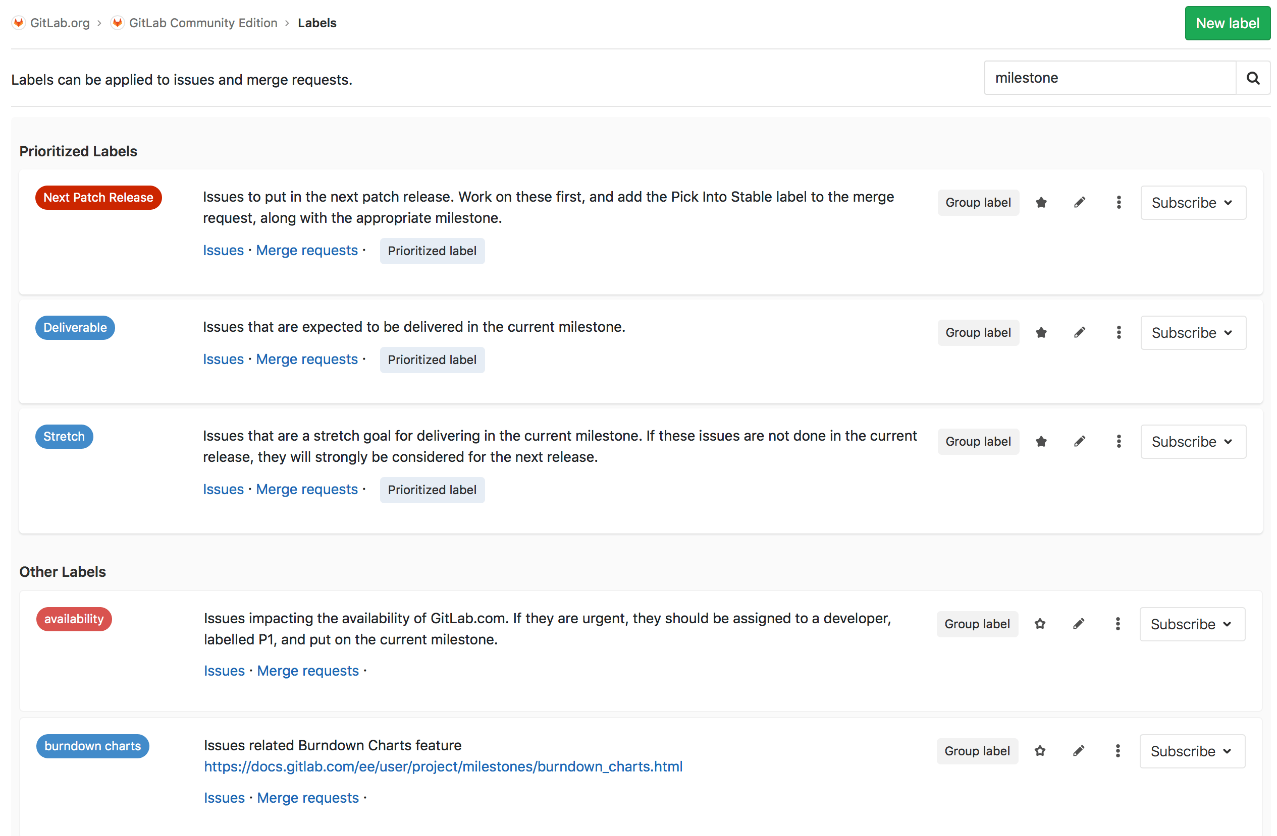- Group labels can be assigned to any issue or merge request in any project in that group, or any subgroups of the group.
