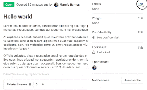 From the sidebar of an issue or a merge request, you can create a new project label inline immediately, instead of navigating to the project label list page.