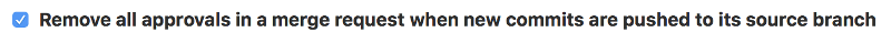 If approvals are set at the project level, you can choose whether all approvals on a merge request are removed when new commits are pushed to the source branch of the merge request: